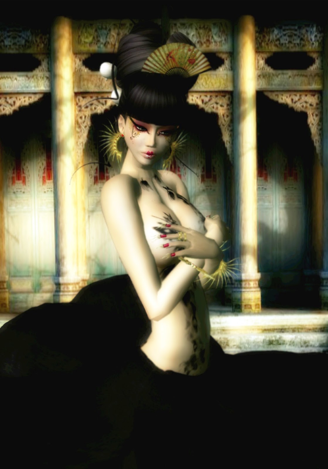 Makeup : White Widow - Face Tatto Dragonfly Gold, blackLiquid MAKEUP needle black liner, blakLiquid MAKEUP vixen loveheart gloss, shadows ( gift special for me from Alge's Designs thanks Algezares Magic ), Kristica Gift Face Tatto black.